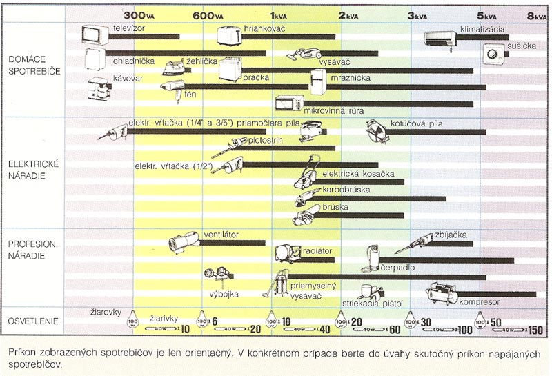 - Chladničky, mrazničky a kompresory majú väčšinou indukčný typ motora a ich odber pri štarte môže byť až 5-násobne vyšší ako ich príkon